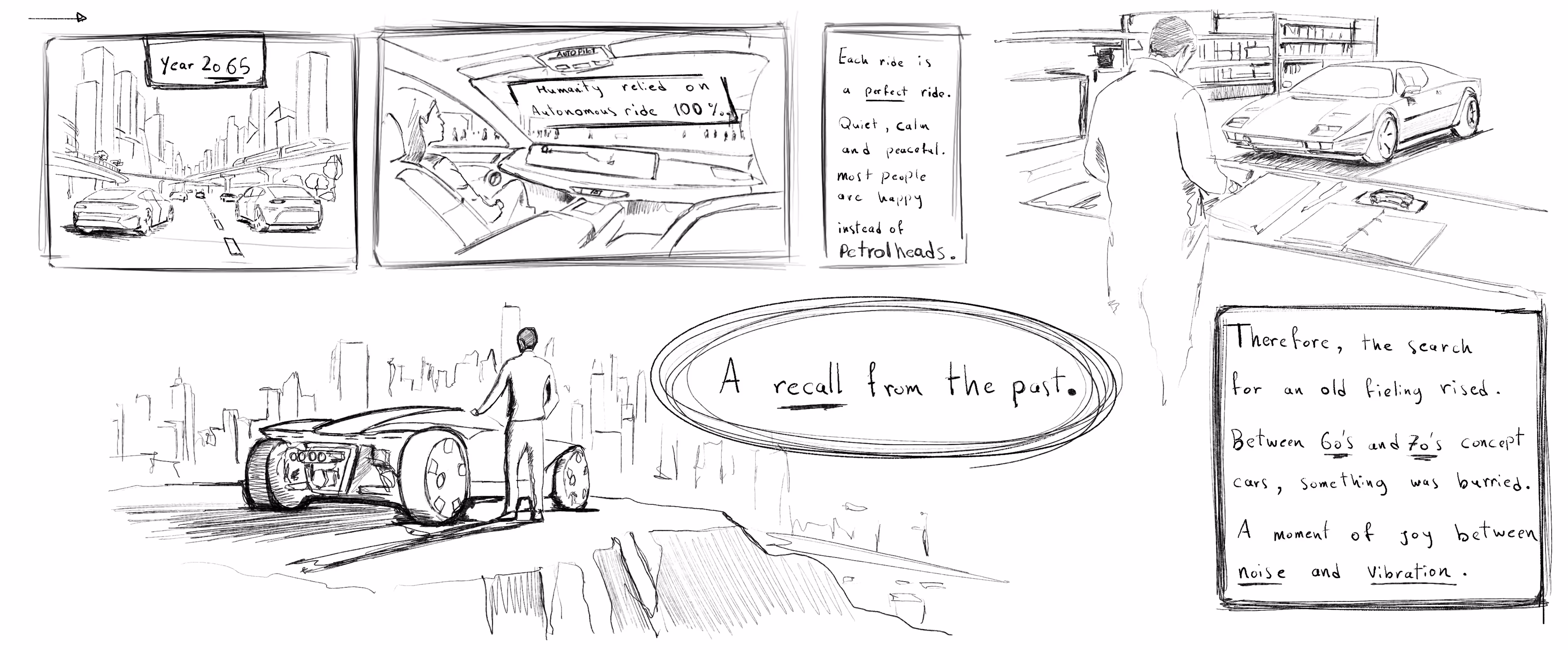 INSTINCT was developed during the summer holiday of 2025 as a self-initiated, voluntary project. The goal was to explore and execute a strong conceptual idea within a relatively realistic package, pushing the design to a level where it could be perceived as a feasible, buildable vehicle. The project served as a personal exercise to challenge and expand my skills in 3D development — particularly in Blender — focusing on translating an idea from early vision into a refined, visualization-ready outcome. Conceptually, INSTINCT responds to a future where autonomous driving has become the norm, and the emotional connection between driver and machine is fading. It proposes an alternative — a driver-focused machine that brings back control, engagement, and instinctive interaction. The design draws inspiration from the radical and expressive concept cars of the 1960s and 70s, reinterpreted through a modern lens. The result is a balance between retro influence and forward-looking execution — a statement about driving as a human experience in an increasingly automated world.
