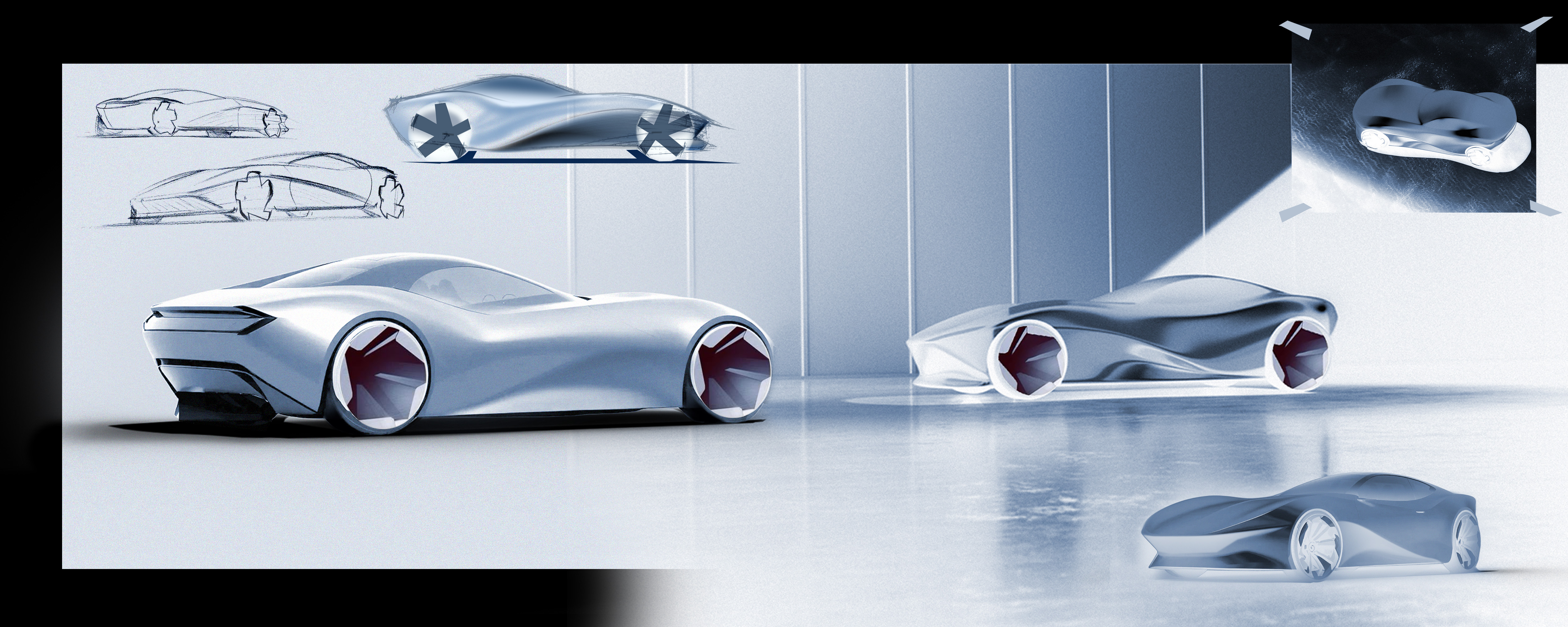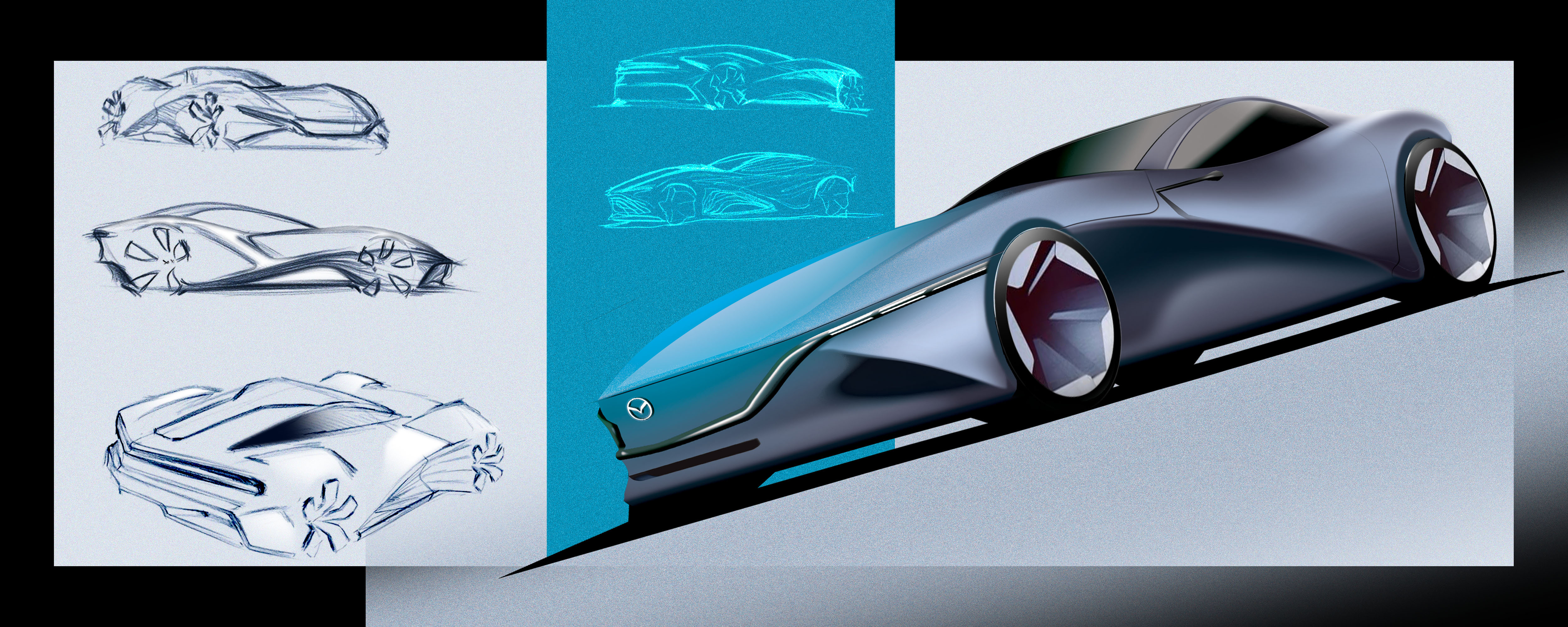 This project was developed during the second semester, where the goal was to design a vehicle inspired by nature. I found my inspiration in the endless motion of ocean waves and the calm yet powerful presence of a whale. These elements guided the form from the very beginning shaping a design that feels fluid, alive, and continuously in motion.At that time, my connection to the project went beyond the brief itself. I was driving a Mazda MX-5, and that experience deeply influenced how I perceived driving not just as transportation, but as something emotional and personal. This feeling naturally translated into the design, becoming a way to express my own interpretation of movement and connection.This project has no official connection or collaboration with Mazda. It was created purely from personal interest a moment where my experience, inspiration, and passion came together into a single form.